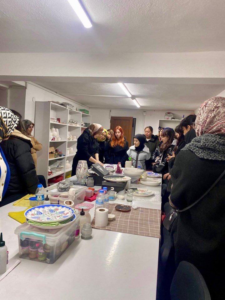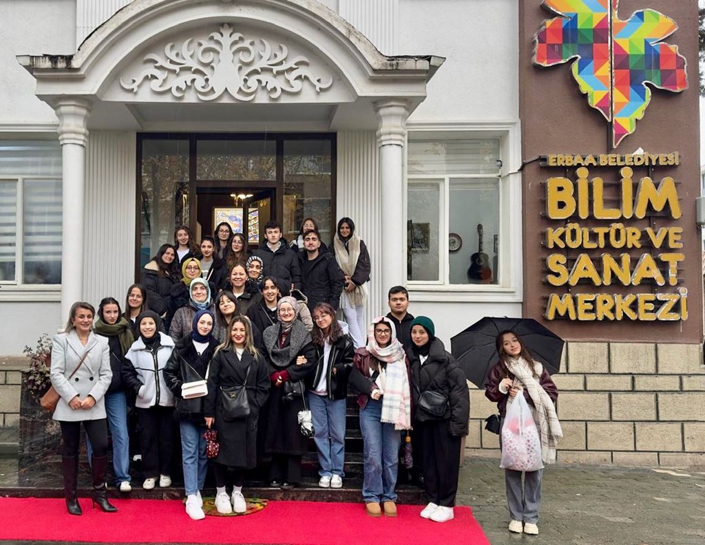A technical visit was organized to the Erbaa Municipality Science, Art, and Culture Center with the participation of first- and second-year students from the Graphic Design Department. Accompanied by Lect. Dr. Havva Sinem İnnap, Assoc. Prof. Dr. Özlem Kum, and Lect. Sebiha Erarslan, the visit aimed to examine the science-, art-, and design-oriented practices carried out at the center on site and to contribute to the professional development of the students.