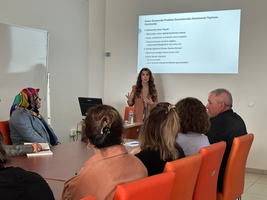 Ara sınavlar öncesinde, üniversitemiz Ön Lisans ve Lisans Sınav Uygulama Usul ve Esasları ile Sınav Kuralları Uygulama Talimatı çerçevesinde, yerleşkemiz toplantı salonunda Yüksekokul Müdür Yard. Öğr. Gör. Güler Uzun’un koordinasyonunda “Sınav Öncesi Görevli Eğitimi” düzenlenmiştir. Bu kapsamda, okulumuzda gerçekleştirilecek sınavların etkin, düzenli ve sorunsuz bir şekilde yürütülmesini sağlamak amacıyla tüm akademik personelin katılımıyla kapsamlı bir bilgilendirme toplantısı gerçekleştirilmiştir.
