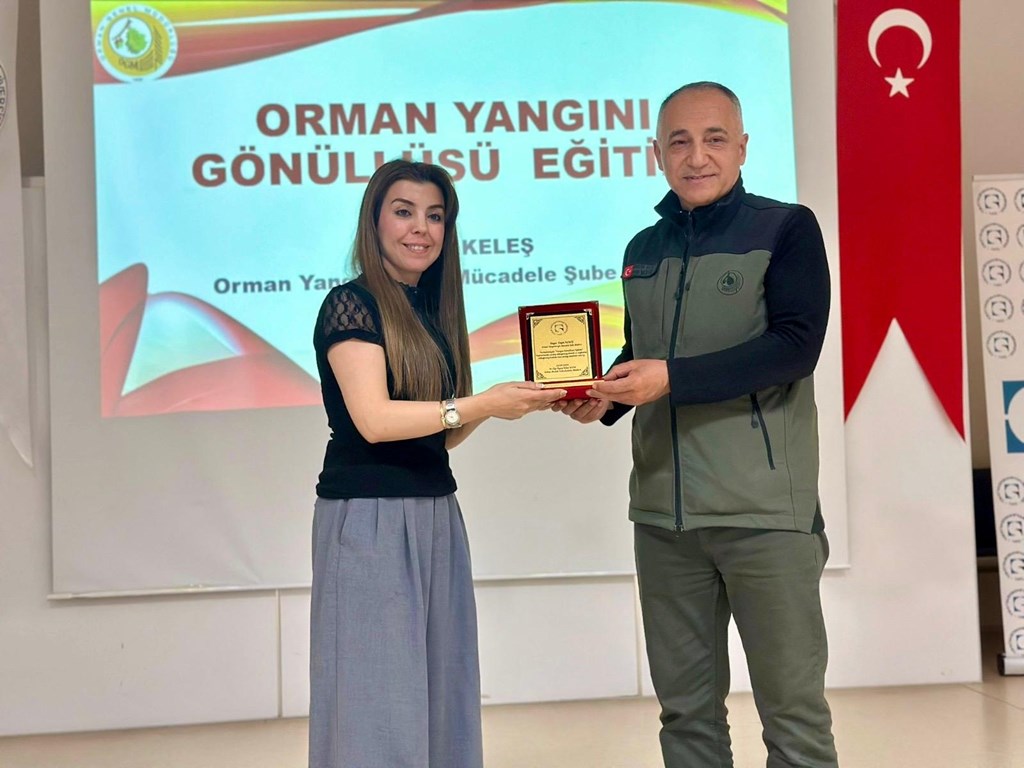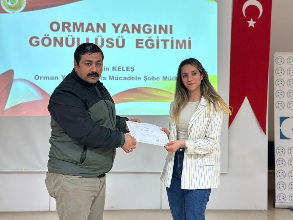 Eğitim programının ardından katılımcılara “Yangın Gönüllüsü Eğitimi Değerlendirme Sınavı” uygulanmıştır. Gönüllülük esasına dayalı olarak gerçekleştirilen sınavda başarılı olan katılımcılara sertifikaları verilmiştir. Eğitimin sonunda katkılarından dolayı Engin Keleş’e Müdür Yard. Öğr. Gör. Dr. Güler Uzun tarafından plaket takdim edilmiş, eğitim ve sınav sürecine katılanlara sertifikaları sunulmuştur.
